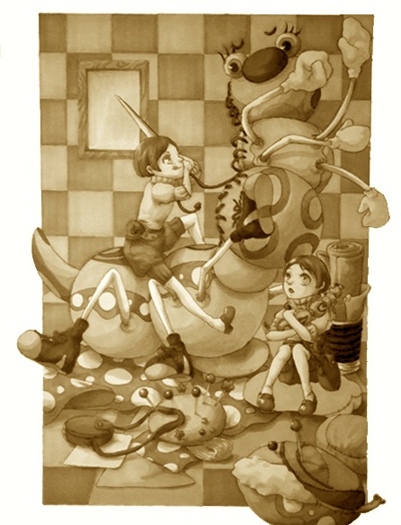 これがその作品。塗りコン前なので加工してセピア調にしてみました。